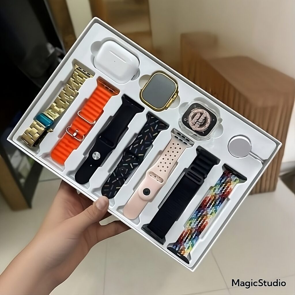 H20 Ultra Smartwatch 10 in 1 with 7 Straps, Silicone Case, Earbuds, and Full HD Display
